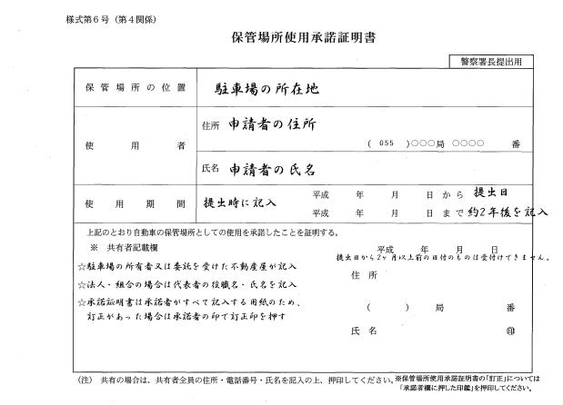 車庫証明>承諾書・自認書 申請書の書き方